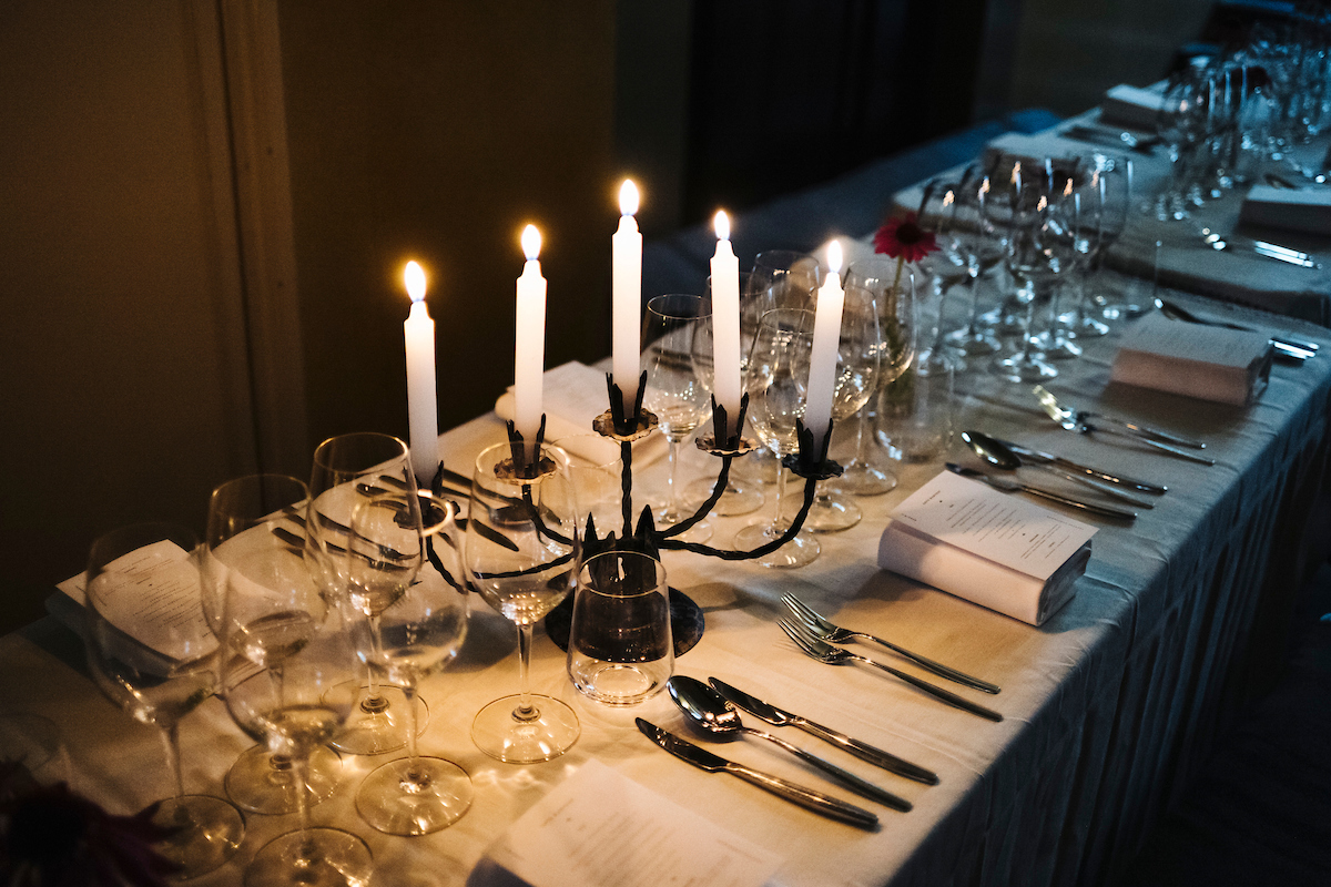 Erottaja 2-korttelin huikeassa porttikongissa ja kirkkomaisessa rapussa järjestetty illallisemme ikuistui kuviin valokuvaaja Benjamin Suomelan linssin läpi. Harmi, ettei Irene Kostaksen iltaa varten kokoama äänimaisema kuulu näissä, sillä se oli tärkeä osa tunnelmaa.