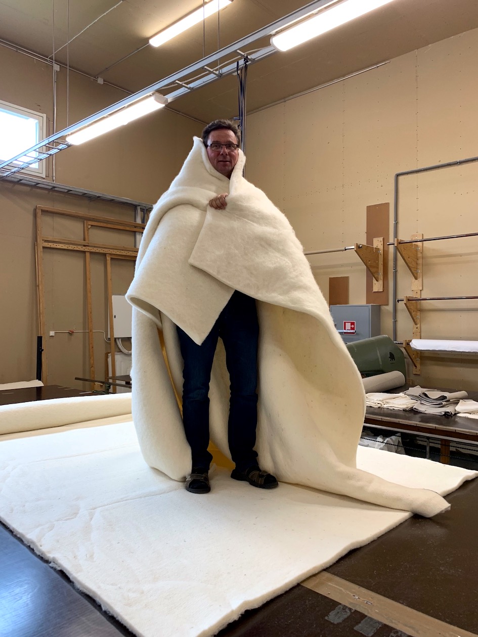 ”Lampaanlihatuotannon ohessa saadaan aina myös villaa, mutta sitä ei ole Suomessa tähän mennessä saatu hyödynnettyä. Suomalaisen lampaan villakuitu on todella hyvä peittojen ja tyynyjen täytteeksi. Se on karkeaa ja kiharaista, joten se pysyy tuotteissa hyvin kuohkeana. — Olemme käyttäneet tuotannossamme tähän asti ranskalaista villaa. Jatkossa valmistamme kuitenkin osan tuotteista suomalaisesta lampaanvillasta. Voidaankin sanoa, että kotimaisen lampaan villa todella sopii meille – lähellä tuotetuista raaka-aineista kotimaisena käsityönä jo 90 vuotiaan porilaisen perheyrityksen tuottamana. Villa tulee meille Uotilan Perhetilalta sekä Kaivosojan Lammastilalta molemmat tilat toimivat Kiikalassa.”