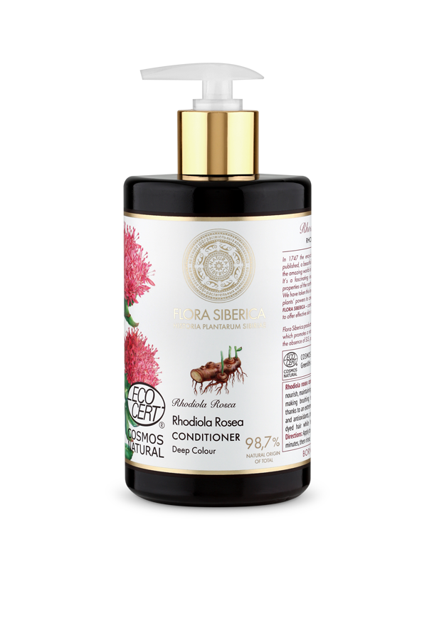 Käytössäni ollut hoitoaine on nimeltään Rhodiola Rosea Conditioner. Ruusujuuri-hoitoaine on niinikään tarkoitettu värjätyille hiuksille. Tuote sisältää kosteuttavia ja hiusta korjaavia eteerisiä öljyjä ja antioksidantteja.