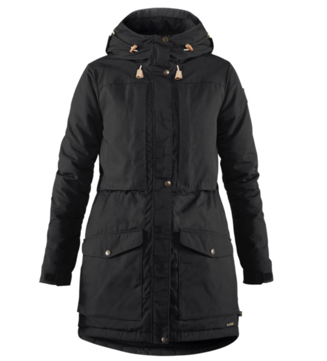 Mua ilahduttaa fiksujen materiaalien lisäksi se, että vaatteen käytettävyys funtsittu huolella. Rotsissa on reilun kokoinen säädettävä huppu, kaksisuuntainen vetoketju, vetskarin päälle tuleva nepparillinen suojaläppä, vyötäröllä kiristysmahdollisuus — ja ihan älyttömästi taskuja, mikä on lasten kanssa operoidessa plussaa. Mittasin, että alempiin sisätaskuihin uppoaa jopa termari helposti, just hyvä.