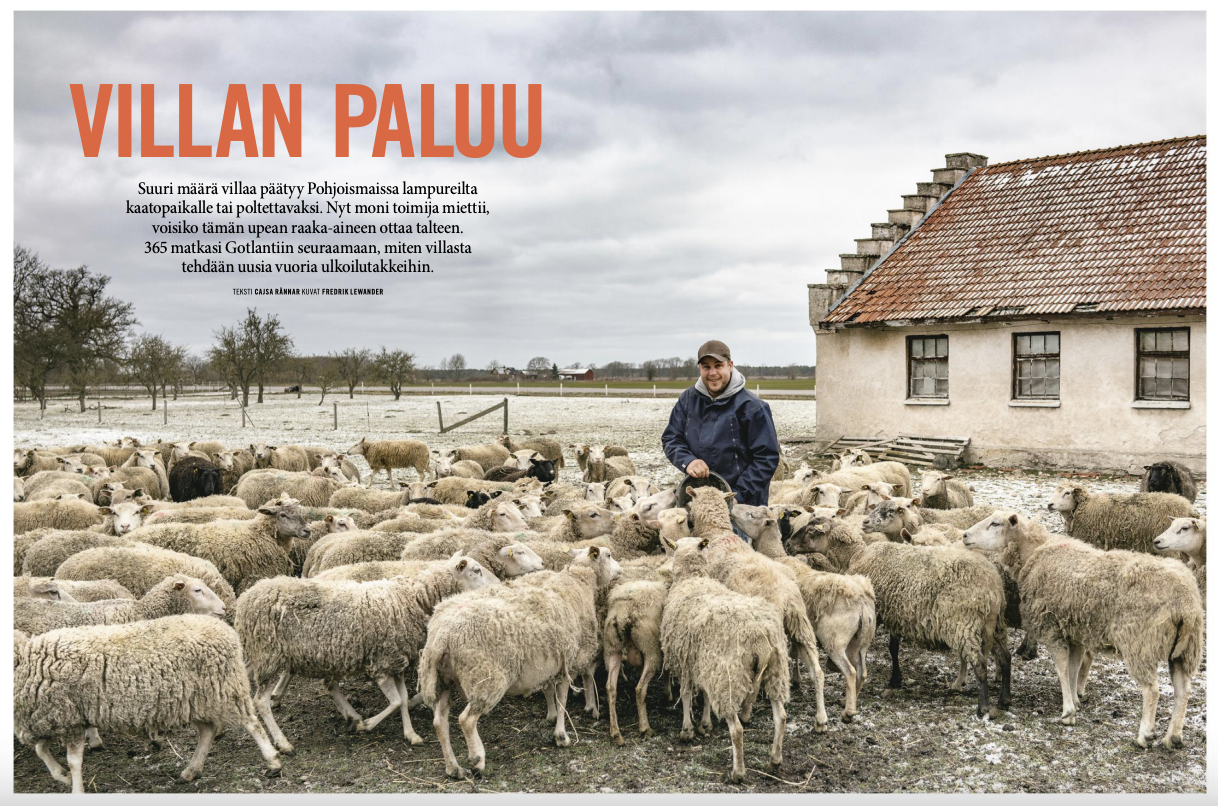 Gotlannissa tuotetaan noin 100 tonnia villaa vuodessa; koko Ruotsissa vähintään 1200 tonnia. Ruotsissa heitetään pois yli 1000 tonnia villaa per vuosi. Tämän ongelman gotlantilaisen Ullkontoretin perustajat Jenny Andersson ja Hans Bulthius halusivat ratkaista. Arkkitehti Jenny ja rakennusalalla työskennellyt Hans löysivät Gotlannista, läheltä Visbytä farmin, jossa he aloittivat gotlantilaisen villan pelastusoperaation. Varsinkin Gotlannissa hukkavillan määrät olivat suuria, lammasfarmaus kun dominoi saaren asumattomia osia. Ruotsissa ei kuitenkaan ollut minkäänlaista perinnettä villan käytölle siihen tapaan, kuin pariskunta halusi. Olemassa olevat villapesulat olivat liian pieniä, joten ratkaisu piti hakea ulkomailta. Sopiva villanpesulaitteisto löytyi Espanjasta ja kalusto ostettiin Gotlantiin. Homma saatiin pyörimään ja nyt Fjällräven ostaa Jennyltä ja Hansilta useita tonneja pestyä villaa vuodessa. Mielettömän inspiroiva stoori ja hyvä esimerkki siitä, kuinka hukkamateriaalista voi luoda itselleen bisneksen!
