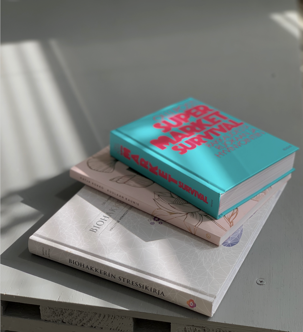 Hyvinvoinnin.fi:stä löytyy terveysruokaa- ja superfoodeja, ekologista kosmetiikkaa ja pesuaineita, mutta sieltä myös kiinnostavaa kirjallisuutta. Kaveripiirissä alkaa olla monia kirjan julkaisseita ja heistä kolme suosikkiani löytyvät kaikki Hyvinvoinnin tontilta. Kuulaan kaunis, Supermarket Survival ja Biohakkerin stressikirja ovat ehdottomasti tutustumisen arvoisia teoksia, jotka nimenomaan haluaa lukea fyysisenä kirjana — eri syistä tosin!