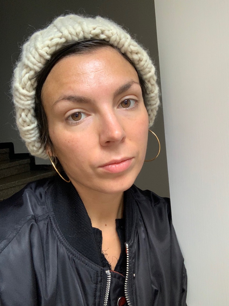 Tässä on lähtötilanne. Ihan hyvin minä tämänkin naamataulun kanssa pärjäisin, kuvaa ottaessa olin juuri palannut kahden viikon lomalta, ollut ensimmäistä kertaa 9 vuoteen kaksi viikkoa ilman lapsia. Olin siis ihan megarentoutunut ja sikäli kasvot niin relassa moodissa, kuin olla saattaa. Kuten huomaat, mulla iho reagoi aurinkoon pisamin ja pigmenttimuutoksin. Ne eivät itseäni harmita ollenkaan, mutta se ryppy!
