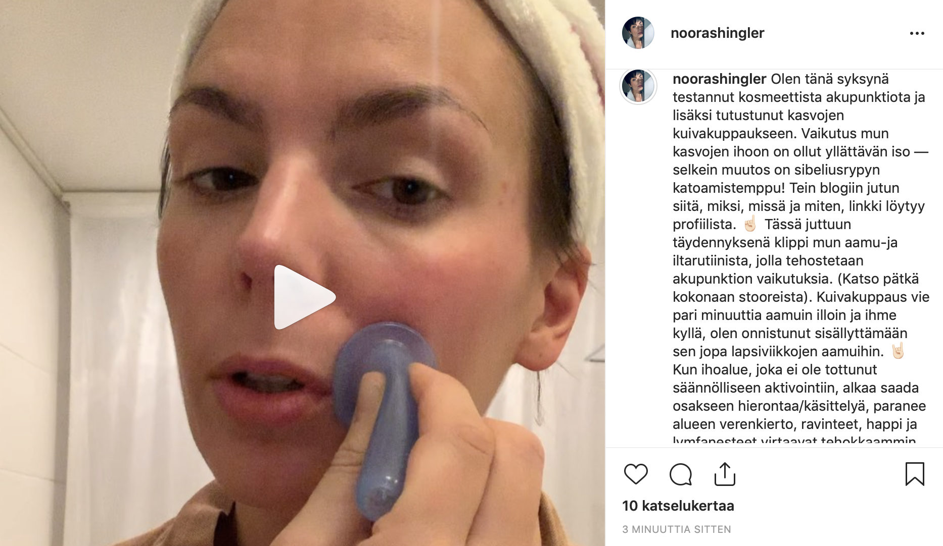 Sain Tainalta kuivakuppauskupit kotiin testattavaksi ja olen ottanut tavaksi hoitaa kasvoja niillä aamuin ja illoin. Se on supernopeaa ja helppoa, video IG-tililläni selventää hyvin, mistä on kyse. Klikkaa TÄSTÄ, niin näet hoitorutiiniklipin käytännössä.