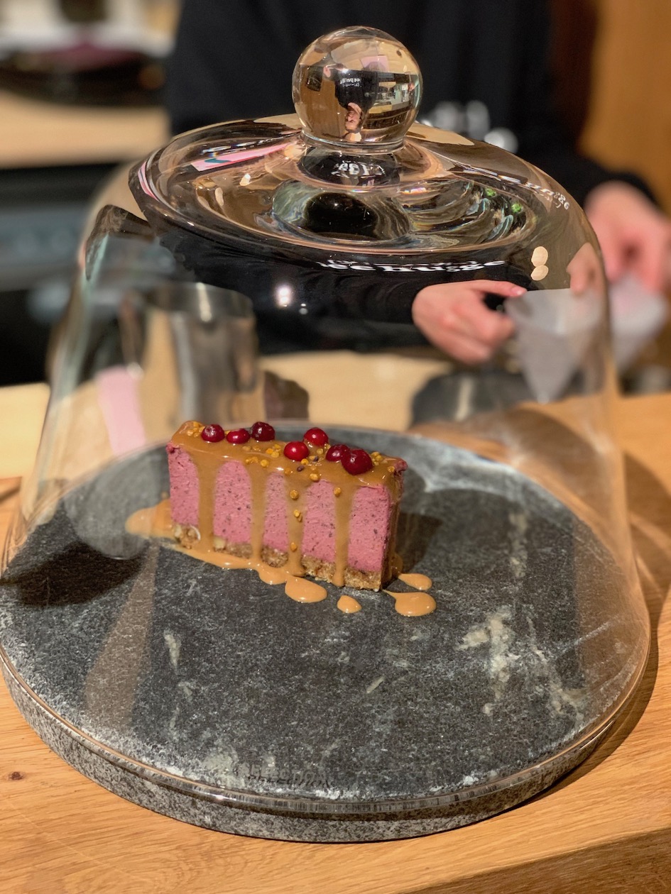 Tarjolla on pieniä ruoka-annoksia, suolaisia ja makeita (kauden menu löytyy täältä). Paikan kiinnostavia juomia suosittelen testaamaan ehdottomasti: kaakao oli mieletön ja pieneksi hitiksi on noussut paikan Chaga ”Cappuccino”, joka ehkä vaatii vähän rohkeutta, mutta on sen arvoinen! Espresson saa biohakkeri-versiona ja mainitussa kaakaossa on luuydinlientä, jos niin haluaa. Sami Tallbergia parhaimmillaan.