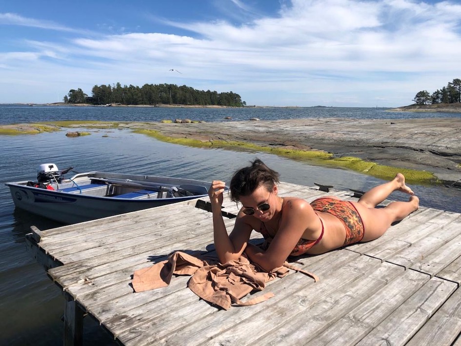 Ja vaalea hipiäkin on kaunis, ja varjossa mukavaa, jos haluaa välttää ylimääräiset rasvailut 😀
