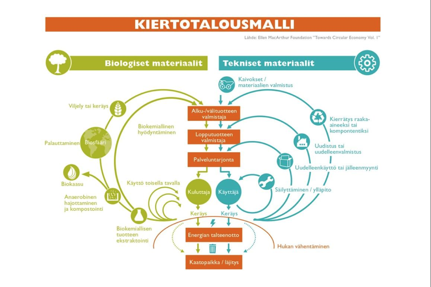 Ympäristöä tuhoava luonnonvarojen ylikäyttö ja fossiilitalous ovat tulossa tiensä päähän ja meidän on aika siirtyä kohti resurssiviisaampaa arkea. Tarvitsemme kiertotaloutta, jossa tuotteiden materiaalit säilyttävät arvonsa ja pysyvät kierrossa niin pitkään kuin mahdollista, jolloin jätettä syntyy mahdollisimman vähän. Kiertotaloudessa neitseelliset raaka-aineet korvataan ylläpidolla, uudelleenkäytöllä ja kierrätyksellä. Myös jakamistalous ja biotalous voidaan nähdä osana kiertotaloutta, koska ne vähentävät ja säästävät luonnonvarojen kulutusta. Sitran laatima Suomen tiekartta kiertotalouteen vuosille 2016-2025 ilmentää melko hyvin kiertotalouden eri osa-alueita.