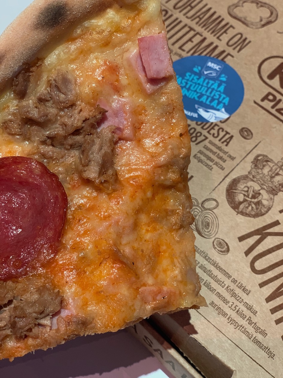 Kun seuraavan kerran tilaat tonnikalaa ravintolassa — eli kun tilaat sen tonnari-pizzan) — kysy sertifikaatin perään. Kysy kalan alkuperästä. Tärkeää on saada myös ravintola-alalle signaalia siitä, että kuluttajia kiinnostaa ekologisuus ja eettisyys ulkona syödessäkin. Mm. Kotipizza on mukana MSC:n käynnissä olevassa Tunaful Tomorrow -kampanjassa näyttäen esimerkkiä vastuullisen tonnikalan käytöstä. Se on hienoa, juuri tällaista esimerkkiä alan toimijoilta tarvitaan.