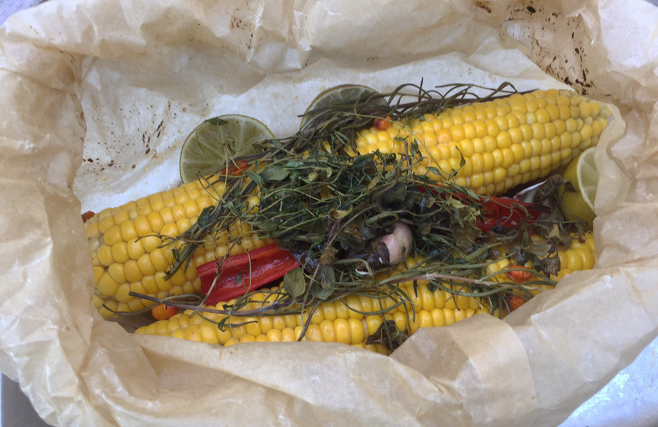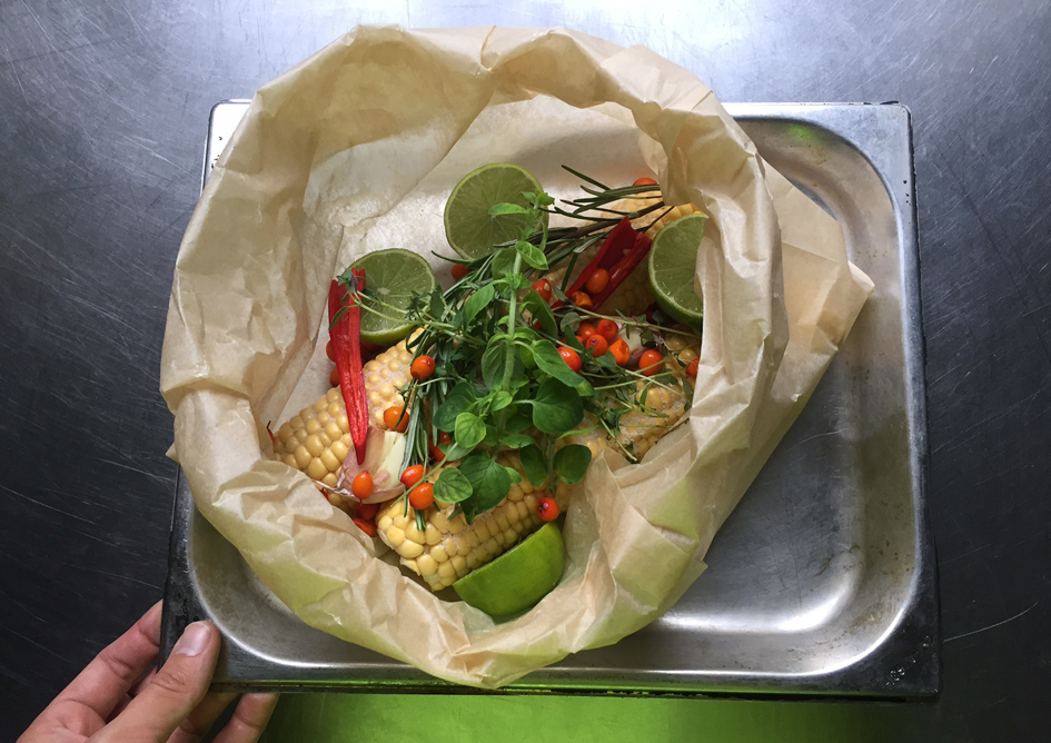 Rakastan tuoretta maissia ja hain ne kaupasta, mutta maustoimme ne hävikkiraaka-aineilla. Maissihan on parhaimmillaan höyrytettynä, mutta siten kun sen valmistaa, ei mukaan saa juuri muita makuja — paitsi jos höyryttää maissin mausteineen pussissa! Maissista tulee yhtä mehevä ja herkullinen kuin höyryttämällä, mutta siihen ihania, uusia makuja paperisen pussin uumenissa. Käytimme postauksessa ESKIMOn ekopaistopussia, joita arvomme Viikon arvassakin (lisää jutun lopussa).