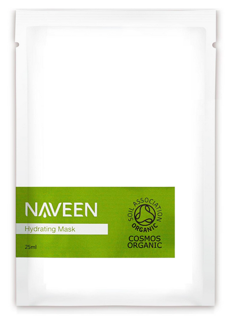 Toinen naamio on kosteuttava, Naveen Hydrating Mask. Luomupuuvillaiset naamiot ovat molemmat mielestäni yhtä mainioita, en pysty valitsemaan, kumpi olisi jotenkin parempi. Kosteuttavassa naamiossa on niinikään Damaskos-ruusua, mutta myös kamomillaa, aloe veraa ja hyaluronihappoa. Paitsi kosteuttaa, voi naamiolla myös ehkäistä ihon pieniä tulehduksia ja korjata rikkonaista ihoa. Hydrating Mask on antioksidanttinen ja sen käyttö torjuu vapaiden radikaalien aiheuttamaa ihon ennenaikaista vanhenemista.