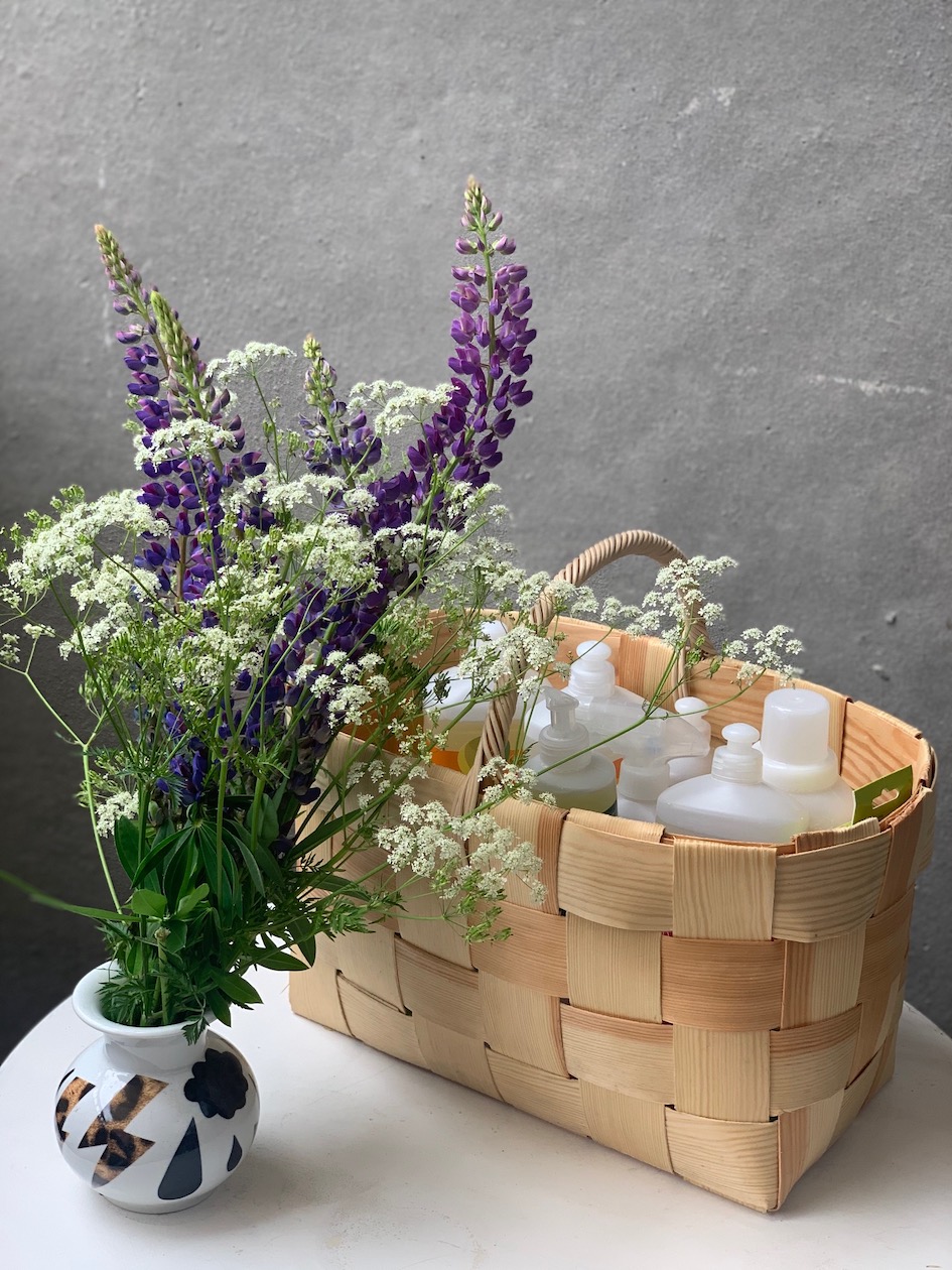 Rosmariini- ja sitruskäsienpesuaineet, yleispuhdistusaine, desinfiointiaine, pyykinvalkaisija, laventelipyykkiaine, pyykin huuhteluaine, sappisaippua ja villan- ja silkinpesuaine ovat jatkuvasti käytössä. Tuotteet ovat ihanan tuoksuisia ja hurjan riittoisia! En vaihtaisi pois.