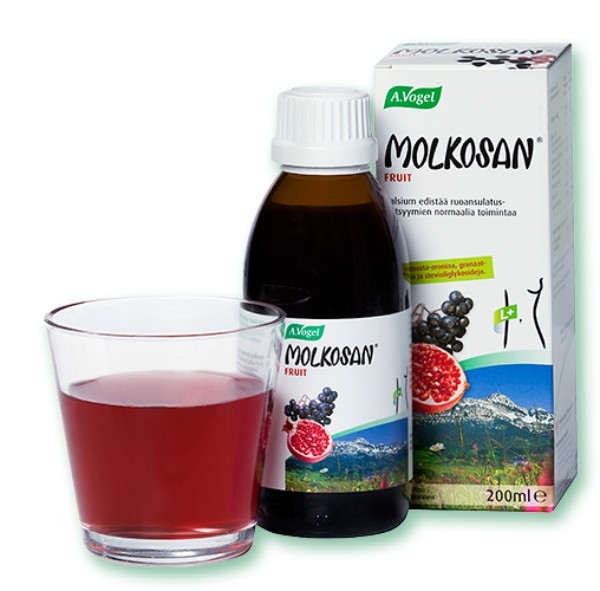 Olen käyttänyt Original Molkosania vatsan hyvinvointia tukemaan. Fruittia en ole maistanut.